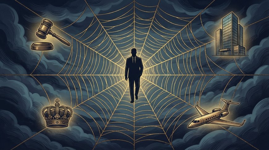 Conceptual illustration of Jeffrey Epstein's network of power and connections.